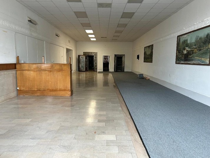 •Being a former bank, this property boasts high-end historical features including marble floors and some walls, beautiful hardwood flooring on the second level, arched windows, original plaster molding, frosted glass door inserts, wood paneling, beautiful dual brass and steel vaults.